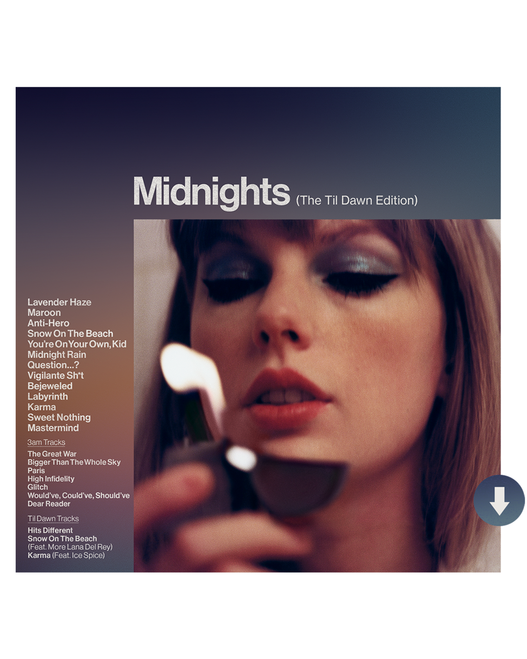 A digital copy of Taylor Swift’s Midnights (The Til Dawn Edition) album (non explicit) will be sent to the email address supplied at checkout. Please note. digital downloads are not available to customers outside the U.S. Digital downloads are delivered as MP3 44.1kHz/320kbps audio files.